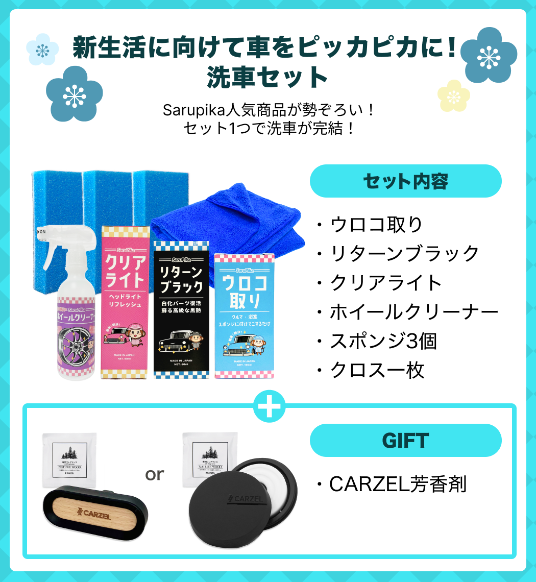 愛車を丸ごとリフレッシュできる充実のセット内容。